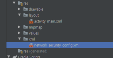 'res > xml > network_security_config.xml' 파일을 추가합니다.