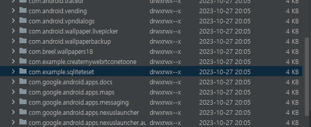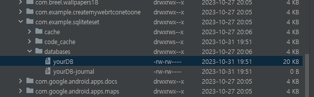 2.2. data -> data -> 자신의 프로젝트 -> database -> 자신이 저장했던 DB파일을 찾읍시다.