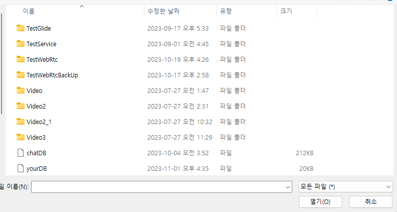만약 파일이 안보인다면 모든 파일로 변경해서 찾아보세요.