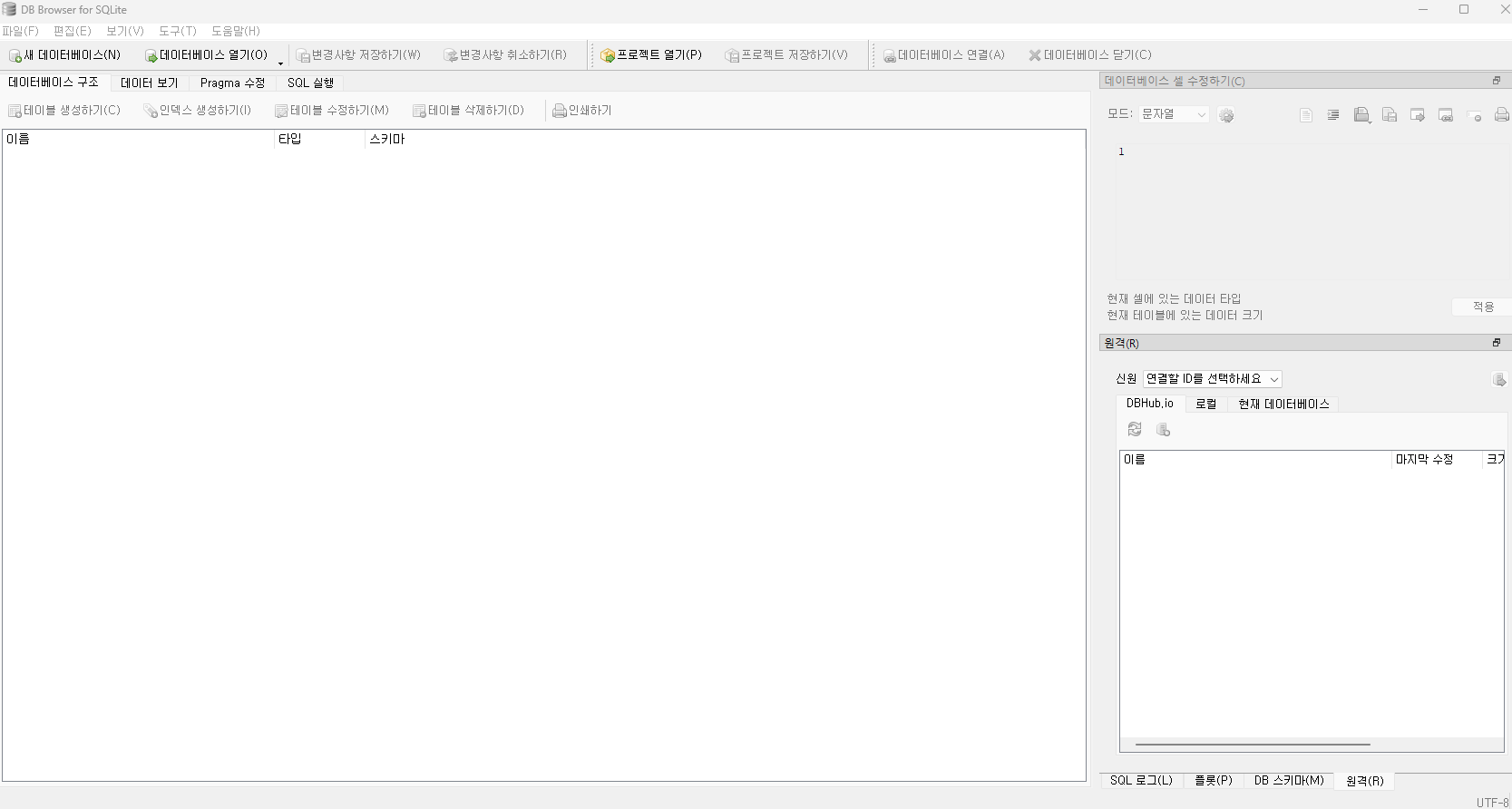 3.1. DB Browser -> 데이터베이스 열기 -> 저장한 위치에서 파일열기
