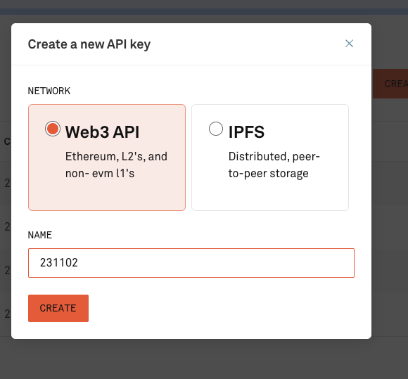 인퓨라(https://app.infura.io/dashboard)로 이동하셔서 로그인 하신 후 API key를 발급받으셔야합니다.