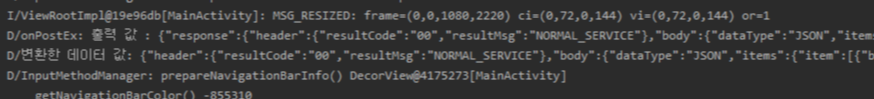 텍스트 뷰에 받아온 String 값을 JSON 형태로 변환하여 출력 되는지 확인해보도록 하겠습니다.