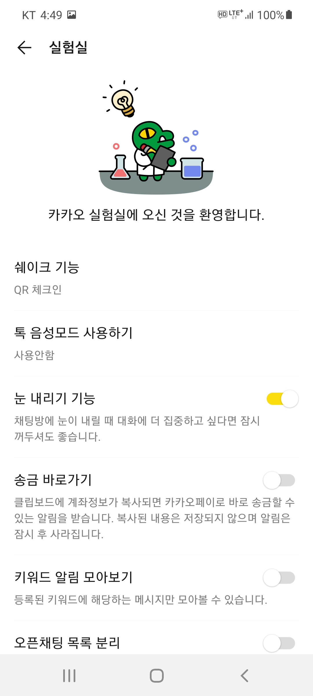 카카오톡에서 QR코드를 보여주기위해 여러번 클릭하는 대신