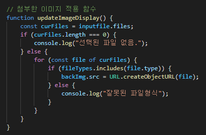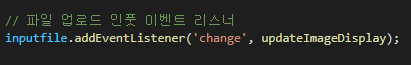 이미지 첨부가 완료되면 이미지가 updateImageDisplay 함수를 통해 첨부한 이미지가 보여집니다.