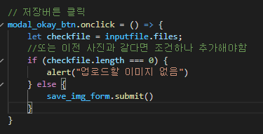 저장 버튼을 누르면 이미지 가 업로드 되도록 해보겠습니다.