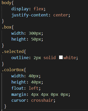 또한 selected 속성을 지정하여, 선택한 색상 박스 주위에 흰색 테두리를 씌워보도록 하겠습니다.