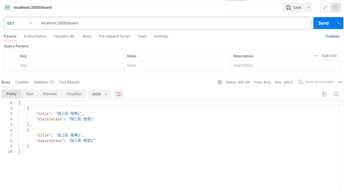 이제 GET요청으로 작성한 모든 게시물을 불러오는것도 확인할 수 있습니다.