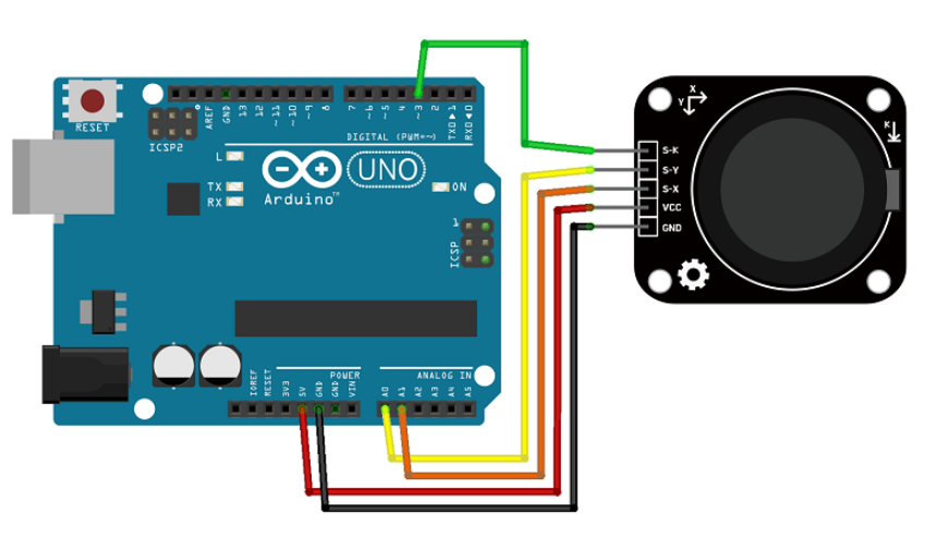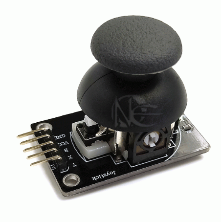 두개의 가변저항을 사용하여 조이스틱의 움직임을 감지하고 해당 값들을 아날로그 신호로 전달하는 센서입니다.