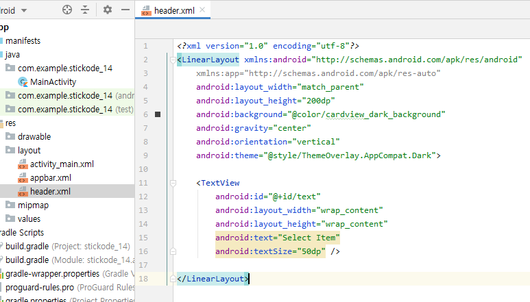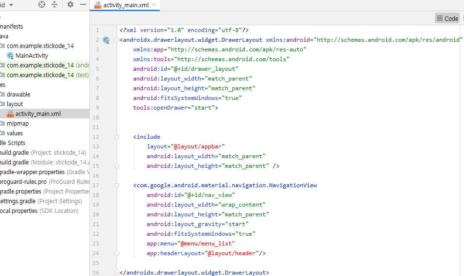 스틱코드를 사용하여 네비게이션 드로어를 만들어보겠습니다.