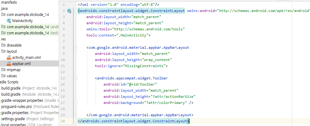 val toolbar: Toolbar = findViewById(R.id.toolbar) // toolBar를 통해 App Bar 생성