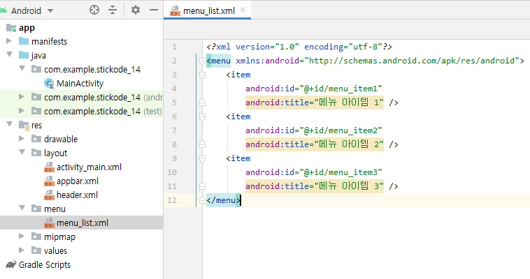 R.id.menu_item1-> Toast.makeText(this,"menu_item1 실행",Toast.LENGTH_SHORT).show()
