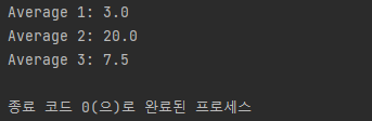double average2 = calculateAverage(10, 20, 30); // 3개의 숫자