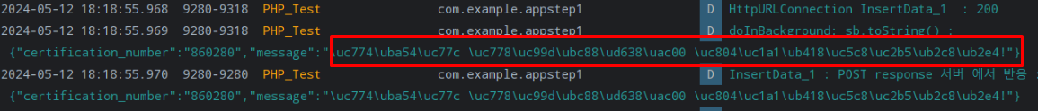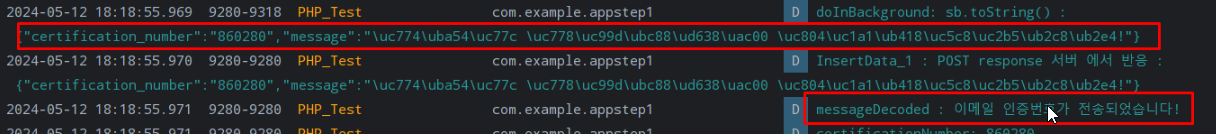 여기서 decodeUTF8(mssage) 는 만든매서드이며 mssage는 매개변수로 변환할 String 값을 넣으면 된다.