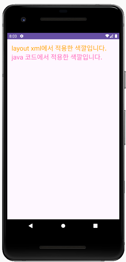 텍스트뷰 글자색이 특정 색으로 설정된 것을 확인할 수 있습니다.