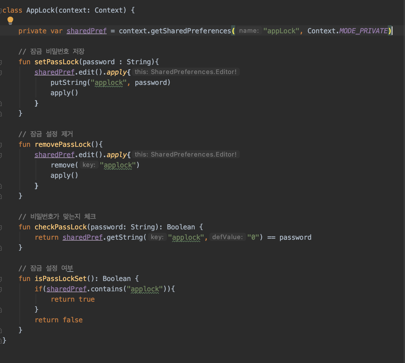 다음으로 상태 및 잠금 비밀번호를 저장하는 클래스 파일을 만들겠습니다.