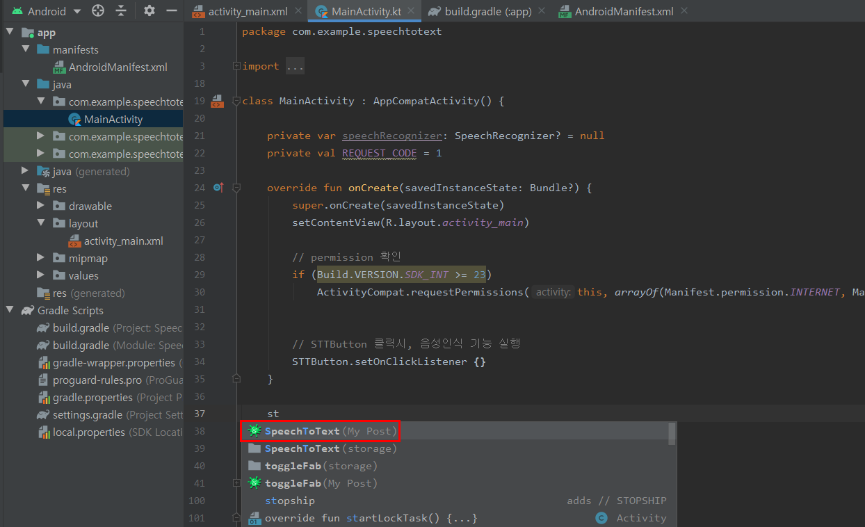 Toast.makeText(this@MainActivity, "음성인식 종료", Toast.LENGTH_SHORT).show()