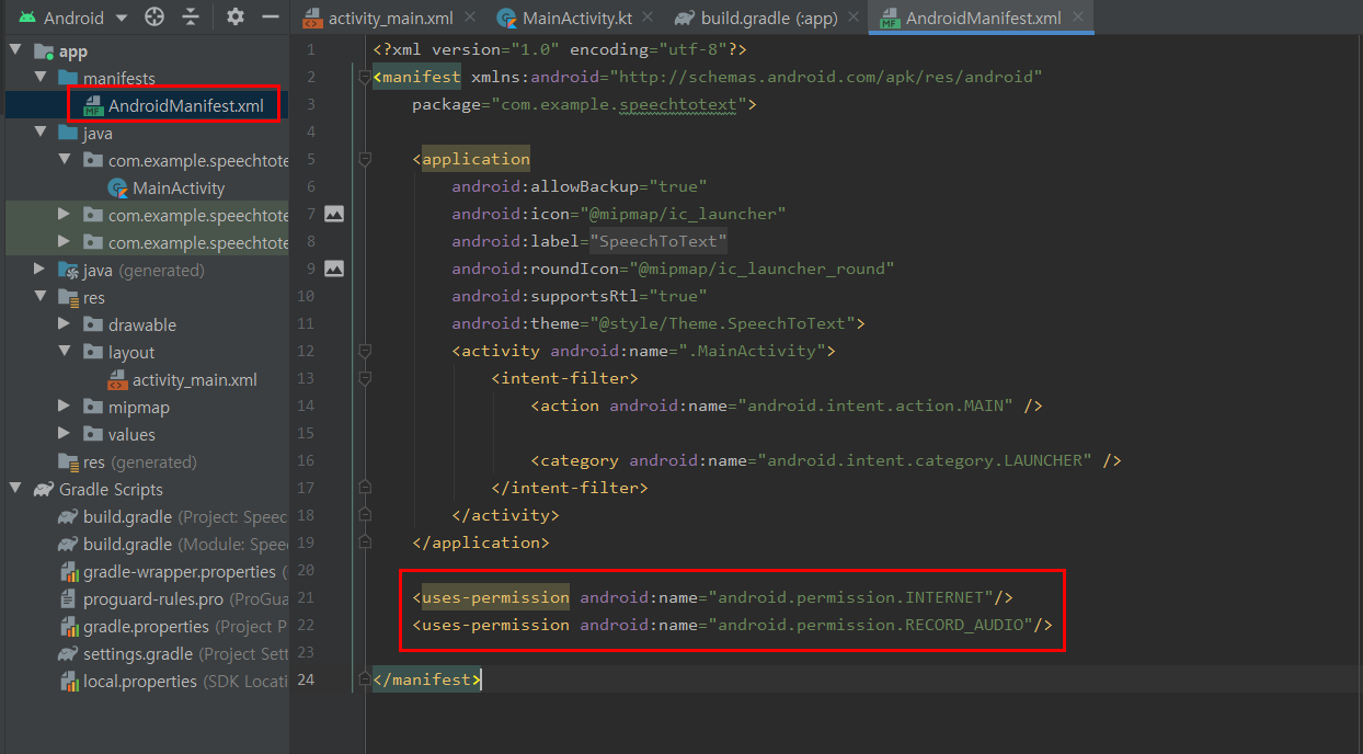 speechRecognizer = SpeechRecognizer.createSpeechRecognizer(this).apply {