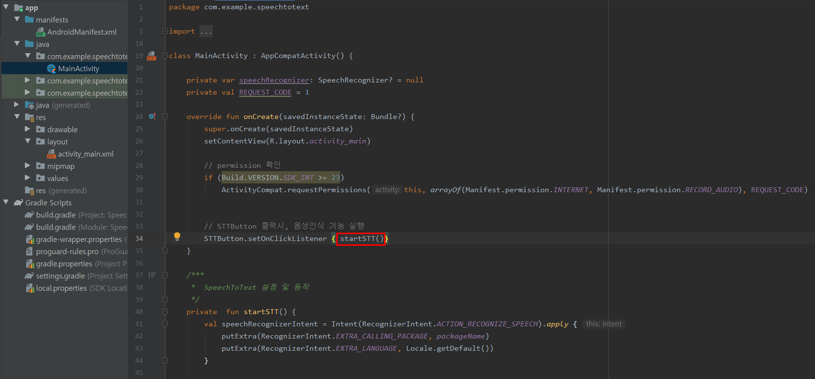 이제 아까 만들어놨던 버튼 리스너에 위에서 만들어준 SST 기능을 연결시켜줍니다.