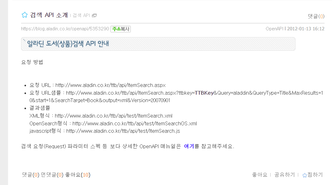 아래는 알라딘에서 제공하는 Open API 메뉴얼 파일입니다.