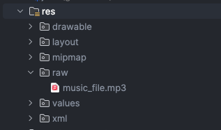 그리고 예제에 사용할 mp3파일을 위 이미지와 같이 raw 폴더 안에 넣어줍니다.