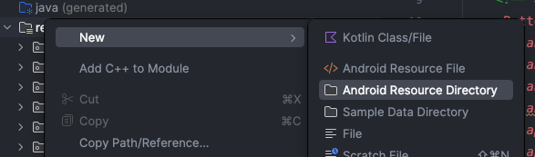 먼저 res 폴더를 우클릭해서 리소스 디렉토리 생성 창을 엽니다.