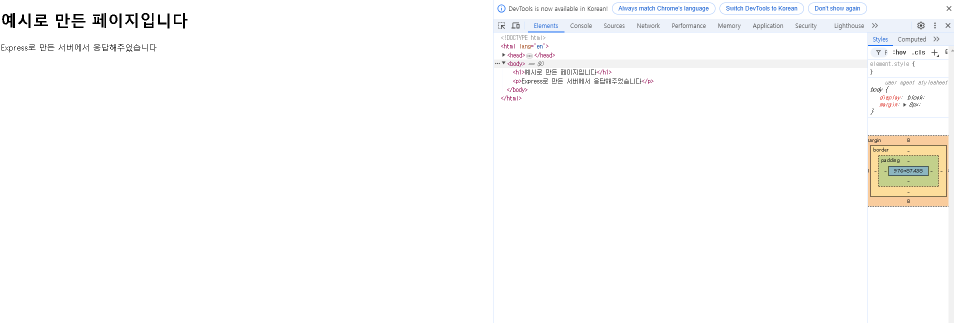 위 이미지와 같이 요청에 성공적으로 응답하여 Express로 만든 서버가 정상적으로 동작하고 있는 것을 확인할 수 있습니다.