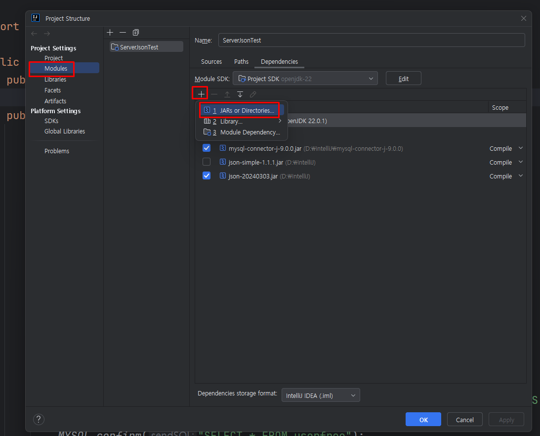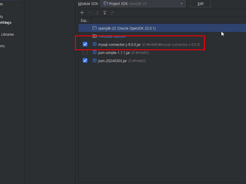 JAR 파일을 추가 항목을 누른 후