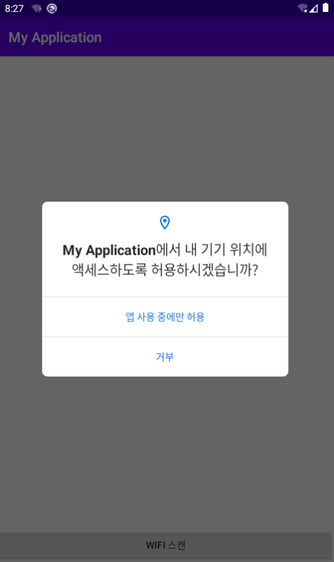 위치정보와 wifi 상태를 확인할 수 있는 퍼미션 등록