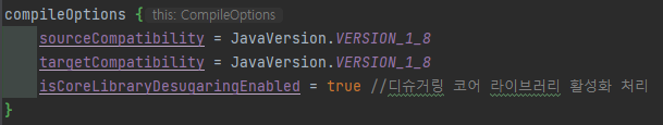 지금 만들 예시에서 사용할 java.time 패키지를 저 레벨 안드로이드 버전에서도 사용할 수 있게 하기위한 조치라 보시면 됩니다.