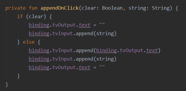 binding.btn3.setOnClickListener { appendOnClick(true, "3") }