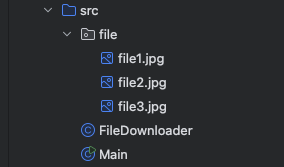- main() 메서드에서 여러 파일의 URL과 저장 경로를 설정합니다.