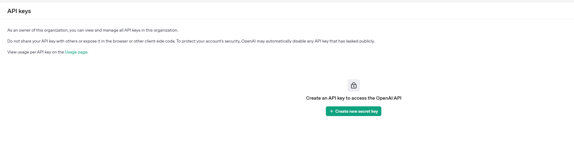 1. 먼저 open ai 홈페이지에서 API 인증 키를 발급 받습니다.