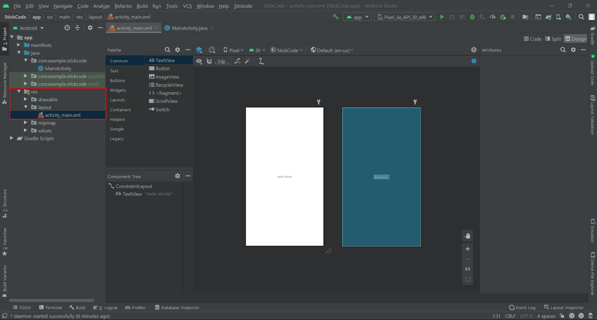 ▶ 프로젝트에서 res > layout > activity_main.xml로 이동해 줍니다.