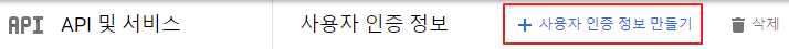 다음으로 API 및 서비스 > 사용자 인증 정보를 클릭해서 화면 상단의 사용자 인증 정보 만들기를 클릭하고 API 키를 클릭해 API 키를 생성해줍니다.