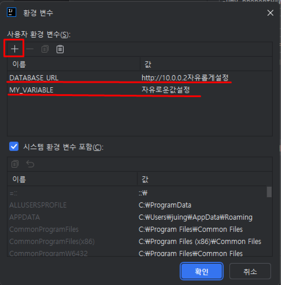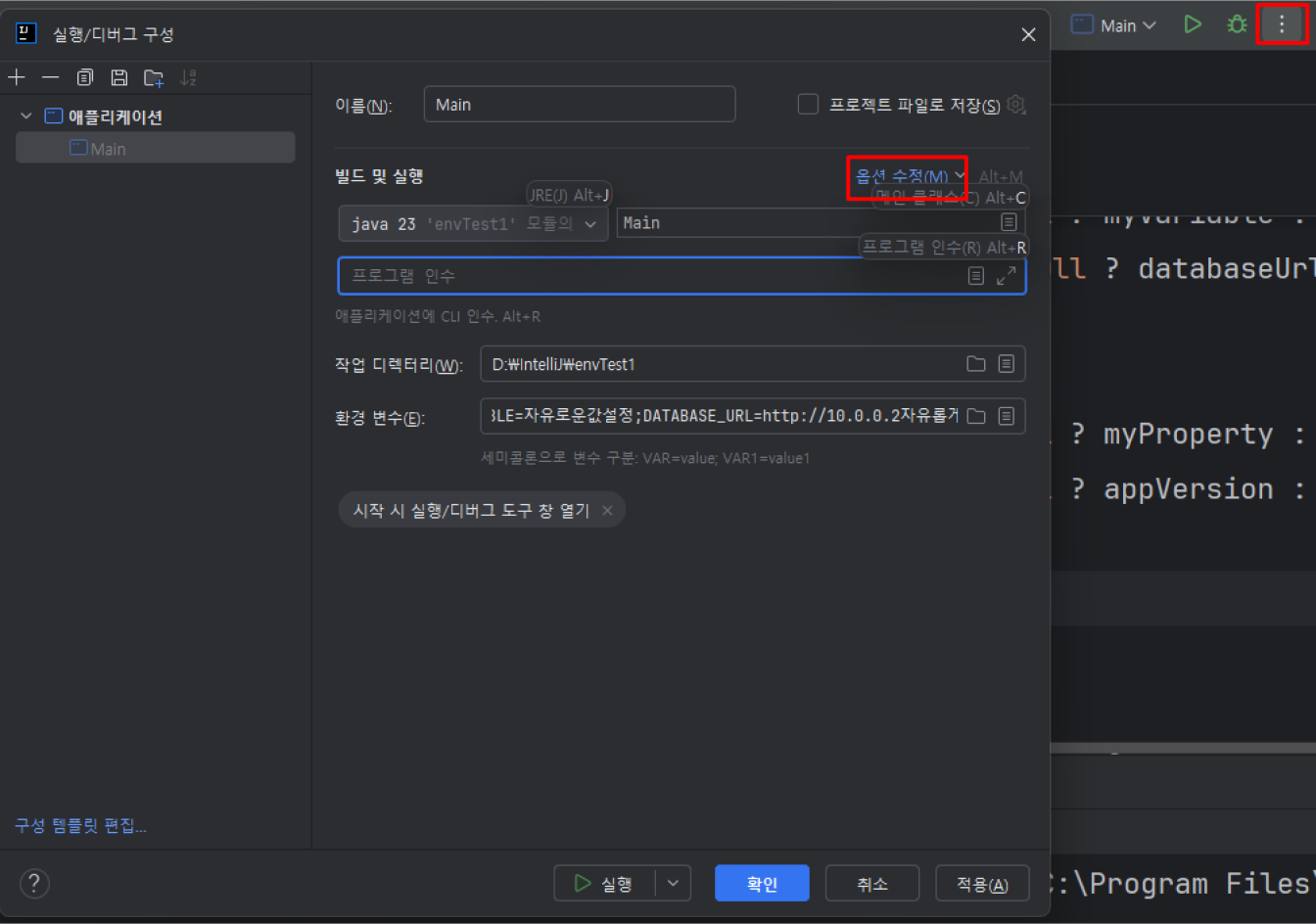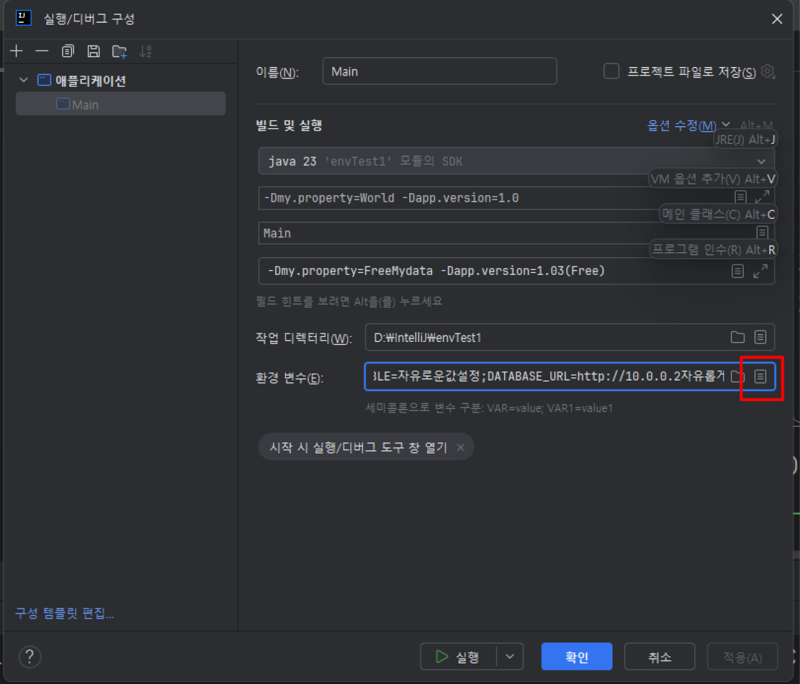 // 인텔리제이 Run/Debug Configuration에서 설정한 환경 변수