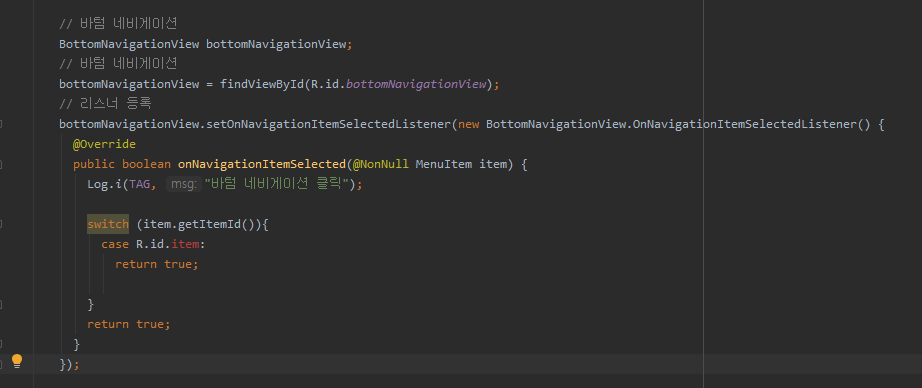 바텀네비게이션의 클릭리스너를 만들어보도록 하겠습니다.