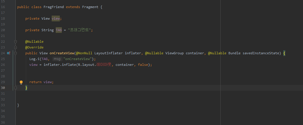 새로운 클래스파일에 프래그먼트를 상속해주고,