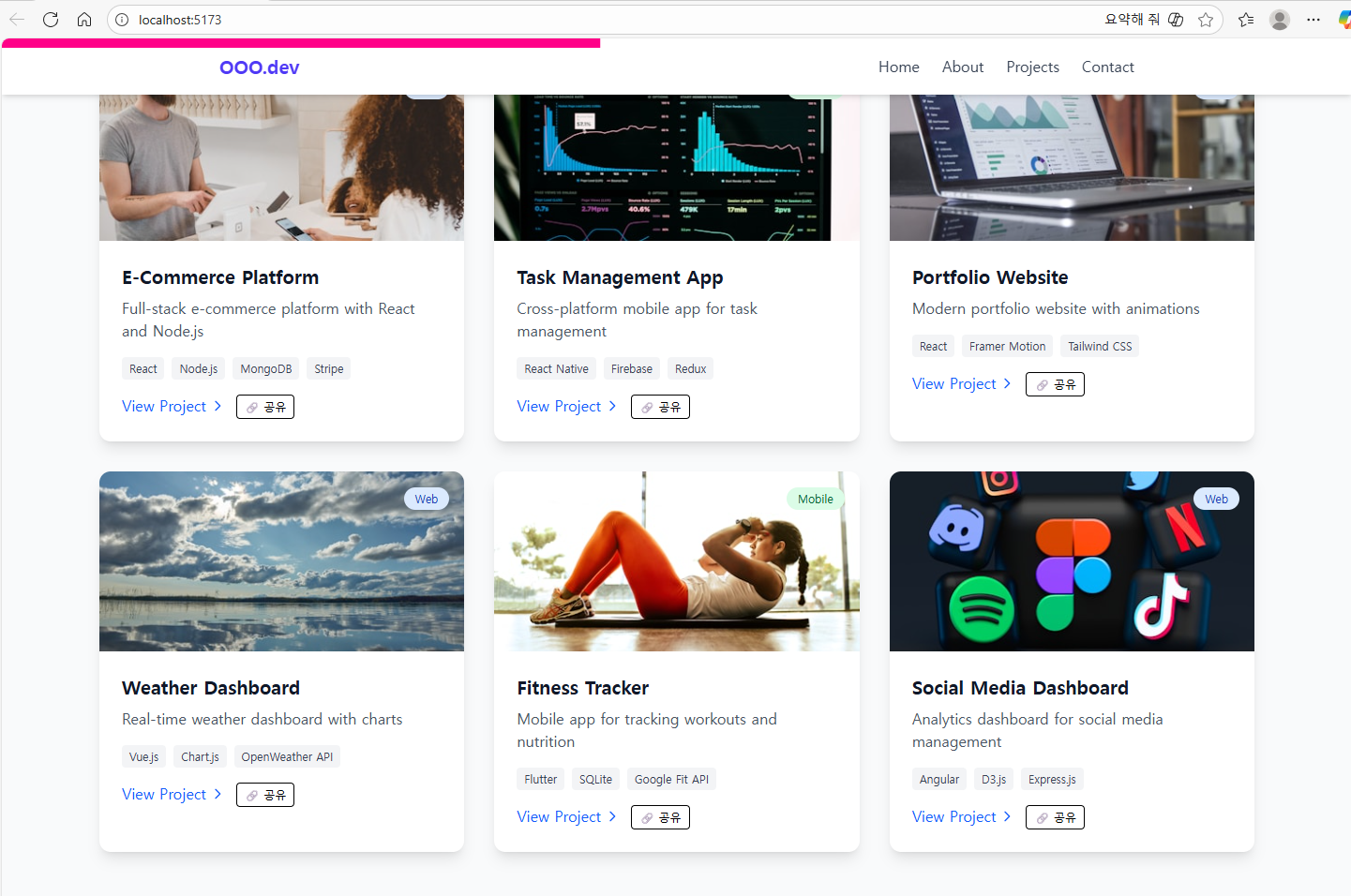 프로젝트마다 공유버튼이 생성된 것을 확인할 수 있습니다.