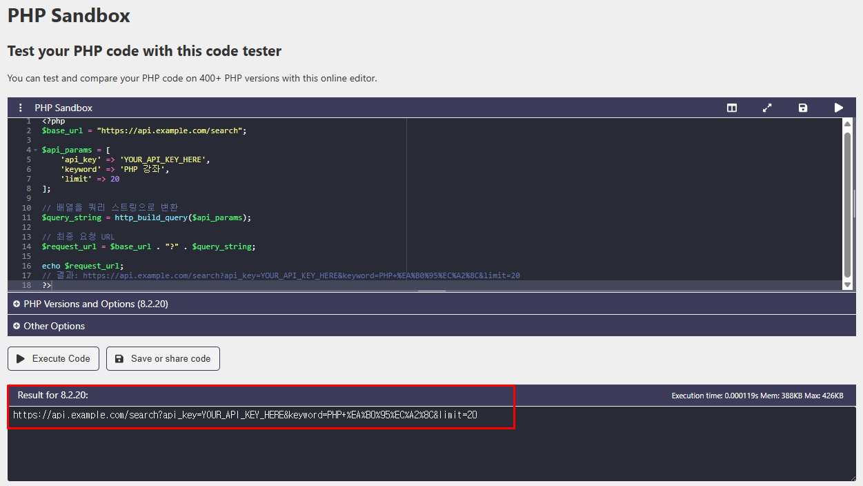 // 결과: https://api.example.com/search?api_key=YOUR_API_KEY_HERE&keyword=PHP+%EA%B0%95%EC%A2%8C&limit=20