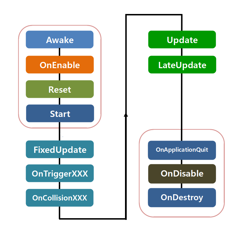 유니티는 안드로이드와 마찬가지로 '생명주기(LifeCycle)'를 가지고 있는데요.유니티에서 자신이 제작한 스크립트의 대부분은 'Monobehaviour'라는 친구를 상속받아 만들어집니다. 스크립트를 만들면 자동으로 상속받아지는 형태이니 유니티의 기본 클래스 형태라고 봐도 좋습니다.이 'Monobehaviour'가 Scene에서 살아가는 동안 일정한 흐름이 생기고, 엔진에서 자동으로 호출해주는 함수들이 생기는데 이 패턴의 흐름을 '생명 주기(Life cycle)'라고 합니다.
