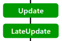 - LastUpdate: Update 가 끝난 후 프레임당 한 번 호출됩니다. Update에서 수행된 모든 계산은LateUpdate가 시작할 때 완료됩니다.LateUpdate는 일반적으로 다음의 3인칭 카메라에 사용합니다. 캐릭터를 움직이고Update로 방향을 바꾸게 하는 경우LateUpdate에서 모든 카메라 움직임과 로테이션 계산을 수행할 수 있습니다. 이렇게 하면 카메라가 포지션을 추적하기 전에 캐릭터가 완전히 움직였는지 확인할 수 있습니다.