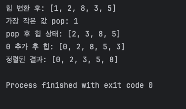 print("힙 변환 후:", nums) # 내부 구조는 정렬과 다름