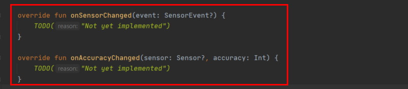 override fun onAccuracyChanged(sensor: Sensor?, accuracy: Int) {
