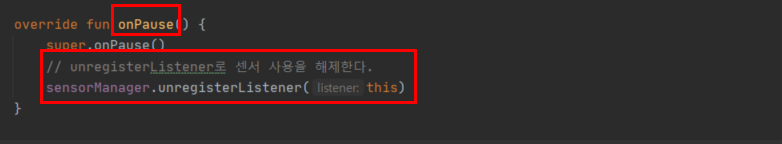 ▶ onPause 에서는 센서 사용을 해제해 줍니다.
