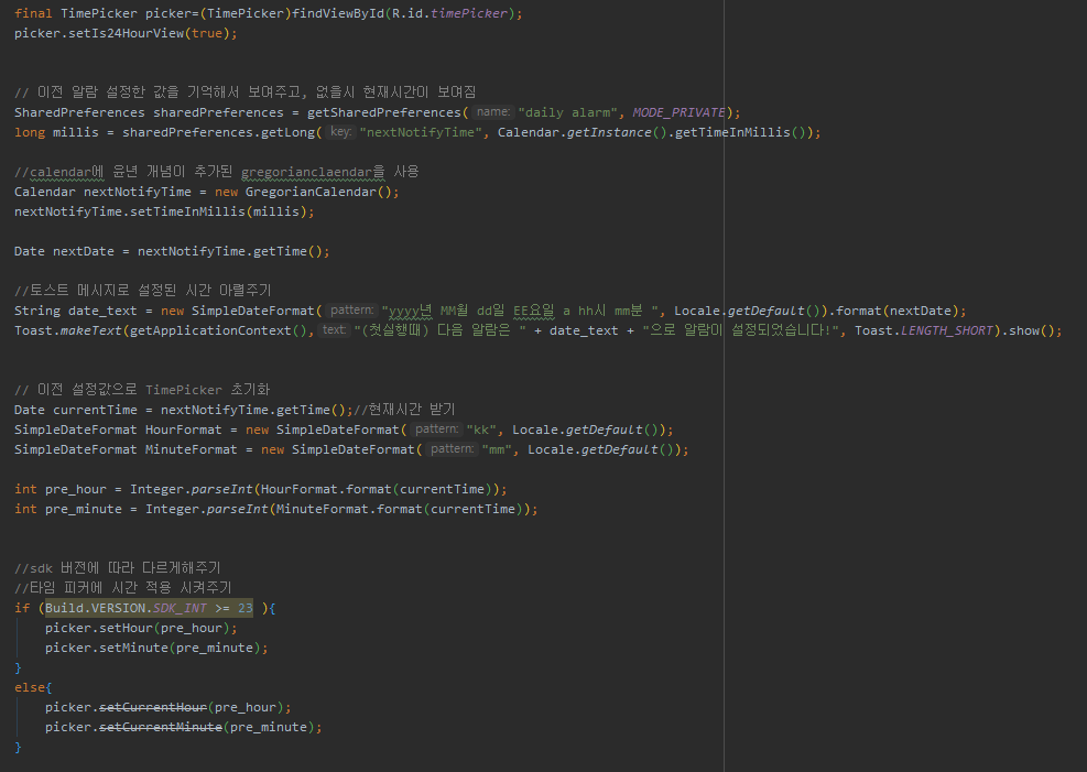안녕하세요~~!! 오늘은 원하는 시간에 알람을 받는 소스에 대해 공부해보겠습니다.