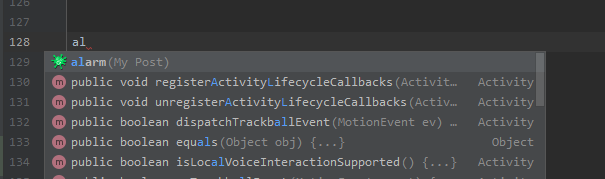alarm의 al만 쳐도 벌써 스틱코드가 자동완성 되려는 것이 보입니다.