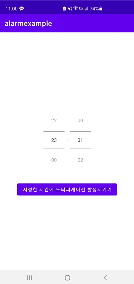 현재시간 23시 이며 23시 01분에 알람을 설정 해보겠습니다.