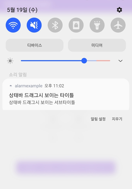 해당 시간이 되면 알람과 함께 노티로 알림이 뜹니다.