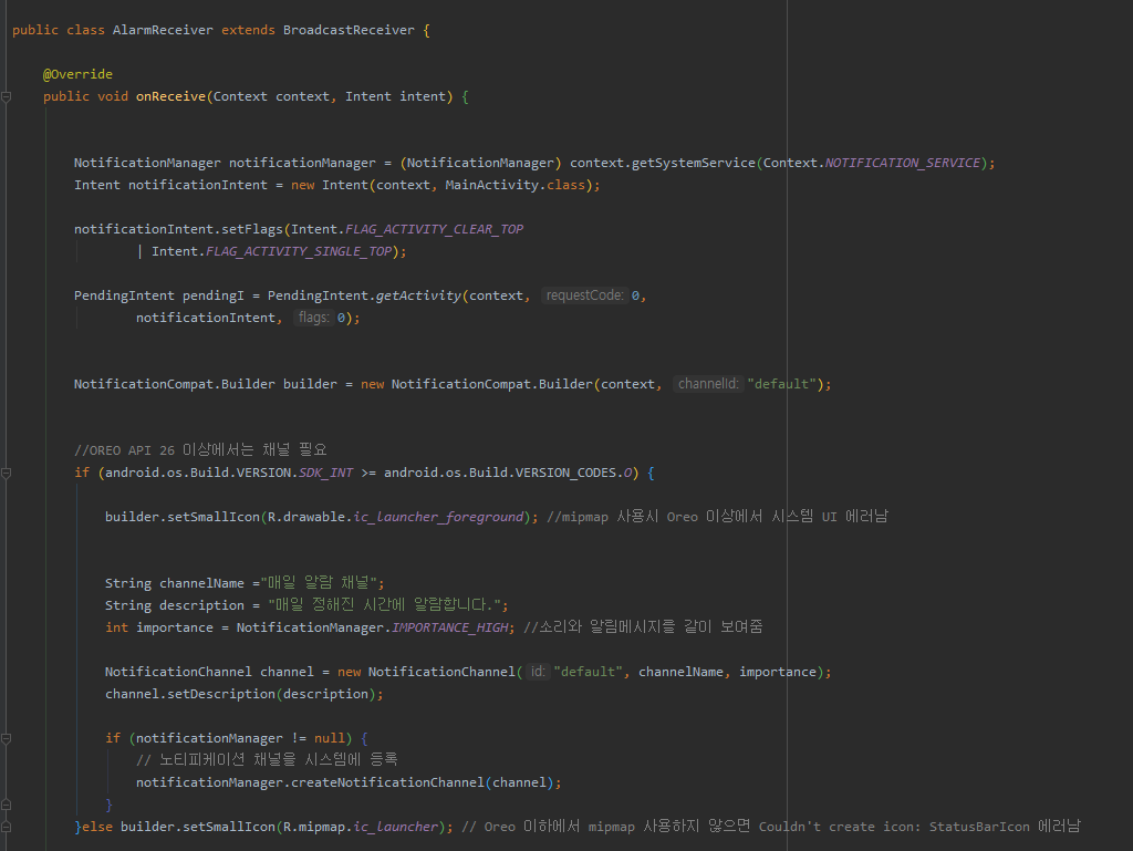 이는 MainActivity에서 불러올 리시브 파일입니다.