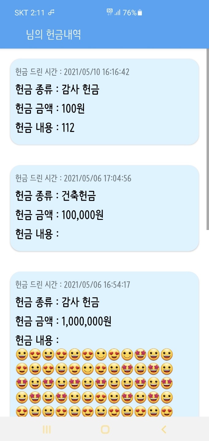 하나의 리사이클러뷰에 여러 뷰 형태를 표시하기 위한 코드만 담기 위해 데이터는 직접 입력해서 넣었습니다.